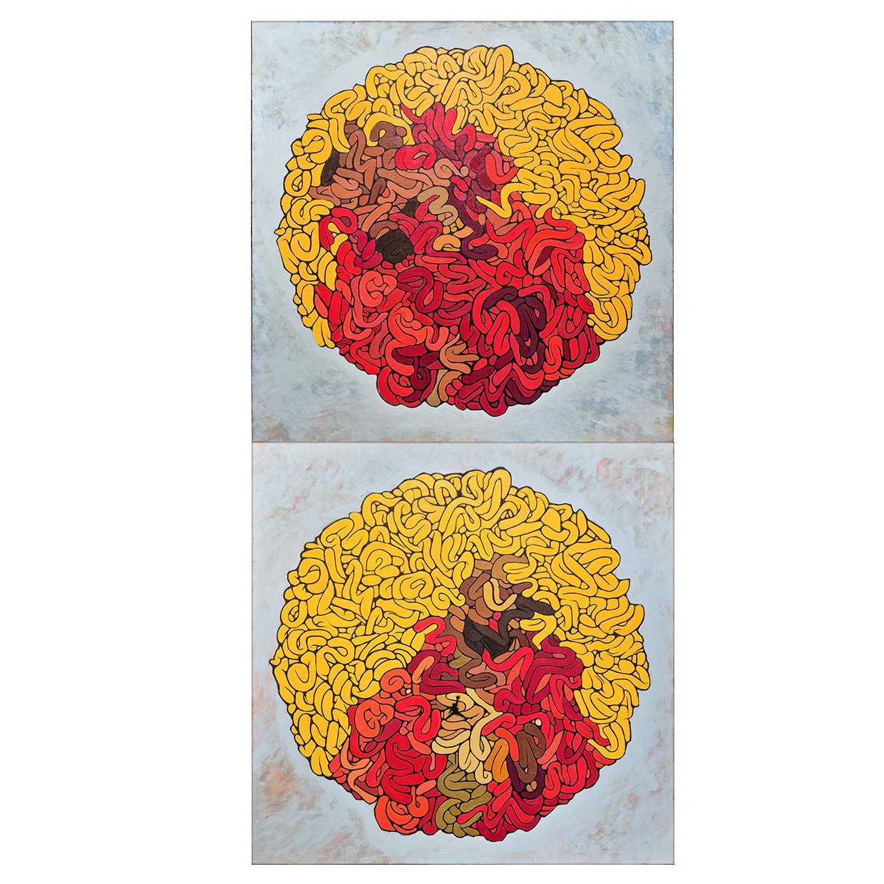 “…to create something overwhelming from the inside out before becoming overwhelmed from the outside in. A blanket, a barrier, a safety net to fall into and my own place to explore. I'm pulled by the tension between the scale of the paintings and what's actually happening in the work. It was never about the size, more what you do with it that counts, right?”